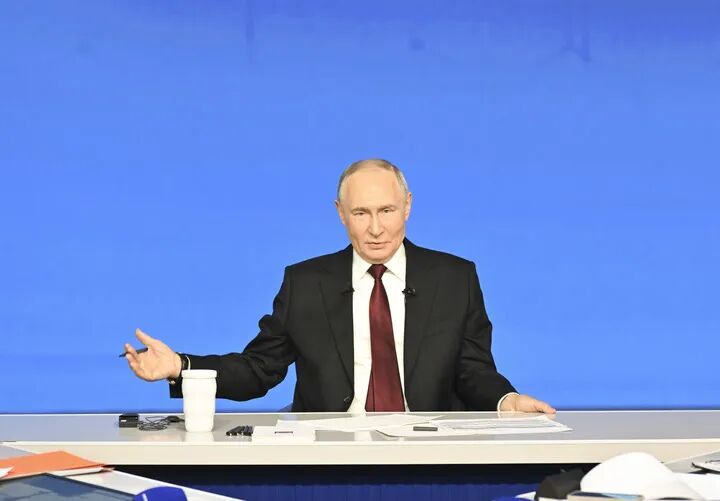 2025年12月19日,在俄罗斯首都莫斯科,俄罗斯总统普京出席“年度盘点”活动。新华社记者 郝建伟 摄