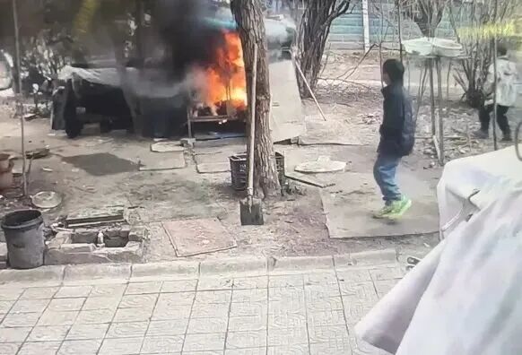 2监控显示,1日中午两男孩将点燃的烟花扔进狗笼致起火,狗狗被烧死