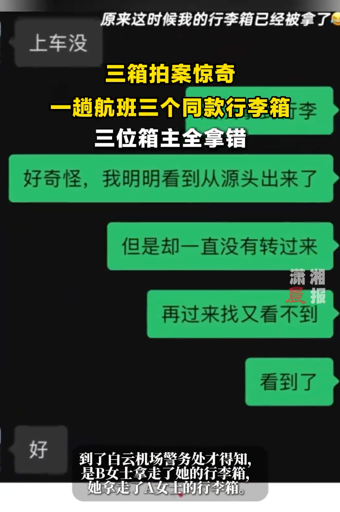 一航班3名女子用同款行李箱,落地后互相全拿错!民警都笑了:十几年第一次遇到
