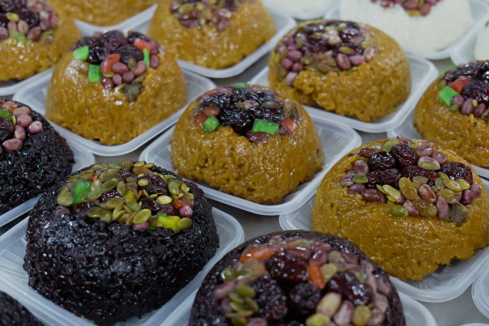 这是1月28日在宏达国盛食品综合批发配送中心一家企业拍摄的八宝饭。新华社记者 刘克英 摄