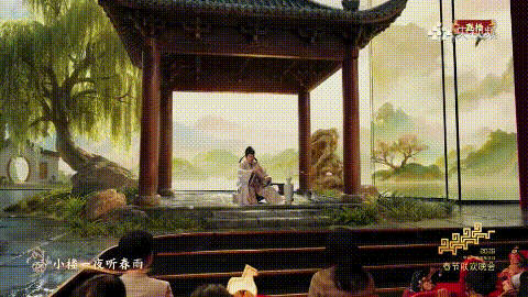 舞台上,无论是活灵活现的动物,还是飞花落雪、池塘大漠,甚至是在小朋友互动时才会盛开的杏花,都由AI制作而成,甚至运镜轨迹都由AI模拟,可以说除了演员和观众,“所见皆AI”。
