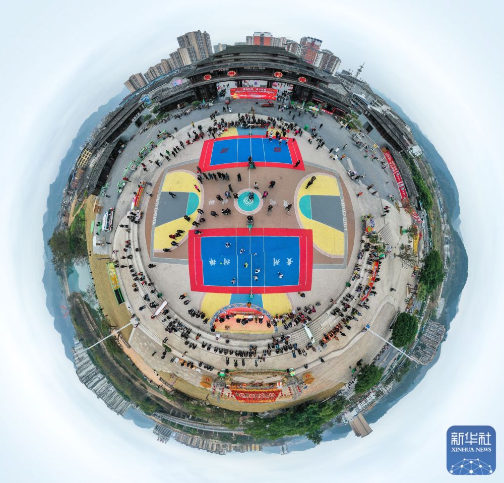 ↑ 这是2月21日拍摄的“村排”比赛现场(无人机全景照片)。