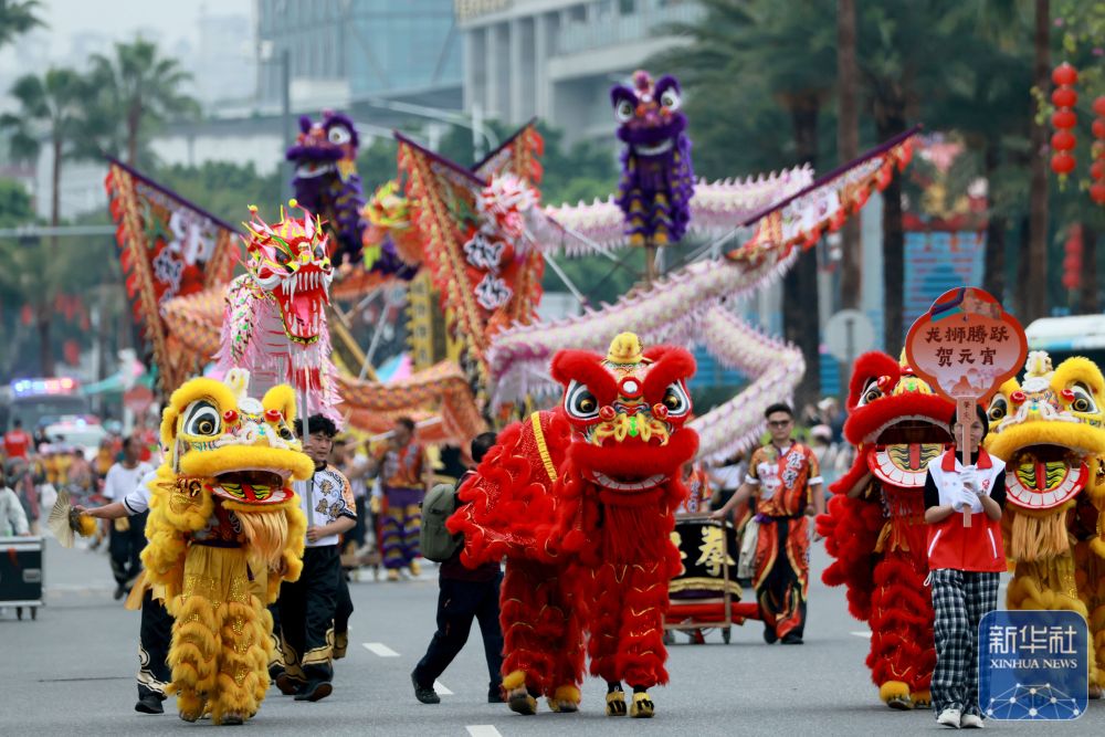 ↑ 3月1日,广东省肇庆市端州区举行“广府风韵汇星湖 多彩非遗闹元宵”2026肇庆广府文化庙会非遗巡游展演活动。这是南狮表演。新华社发(刘春林摄)