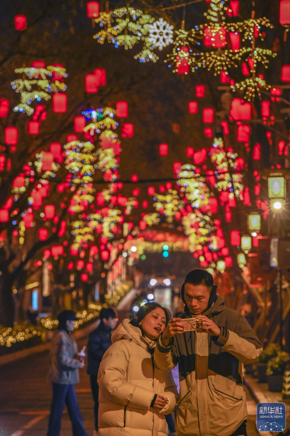 ↑ 2月28日,游客在江苏省南京市夫子庙花灯市场挑选花灯。新华社发(李文宝摄)
