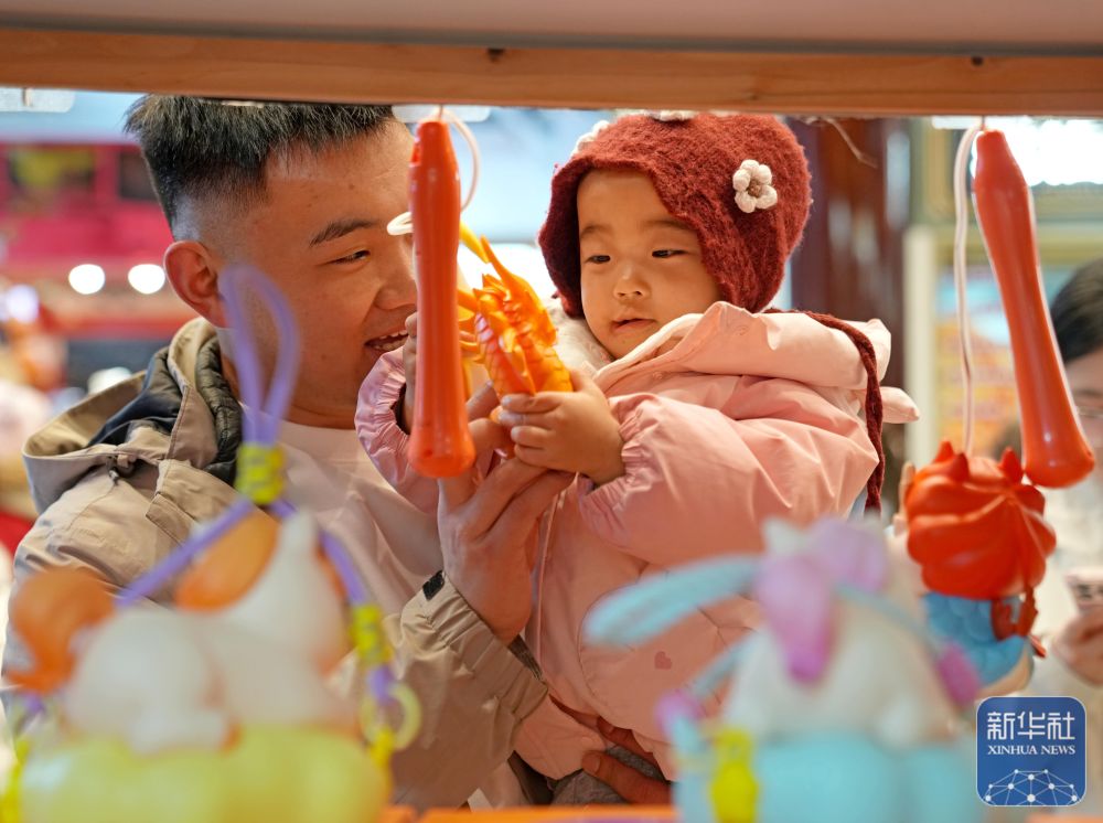 ↑ 3月2日,游客带着小朋友在豫园商城选购手提花灯。