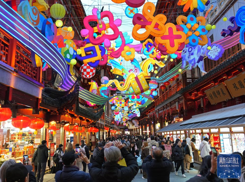 元宵佳节来临,2026上海豫园民俗艺术灯会流光溢彩,人头攒动。传统的非遗灯彩、精彩的文艺演出、热闹的年味市集,为游客带来充满年味与烟火气的新春游园体验。 新华社记者 刘颖 摄影报道