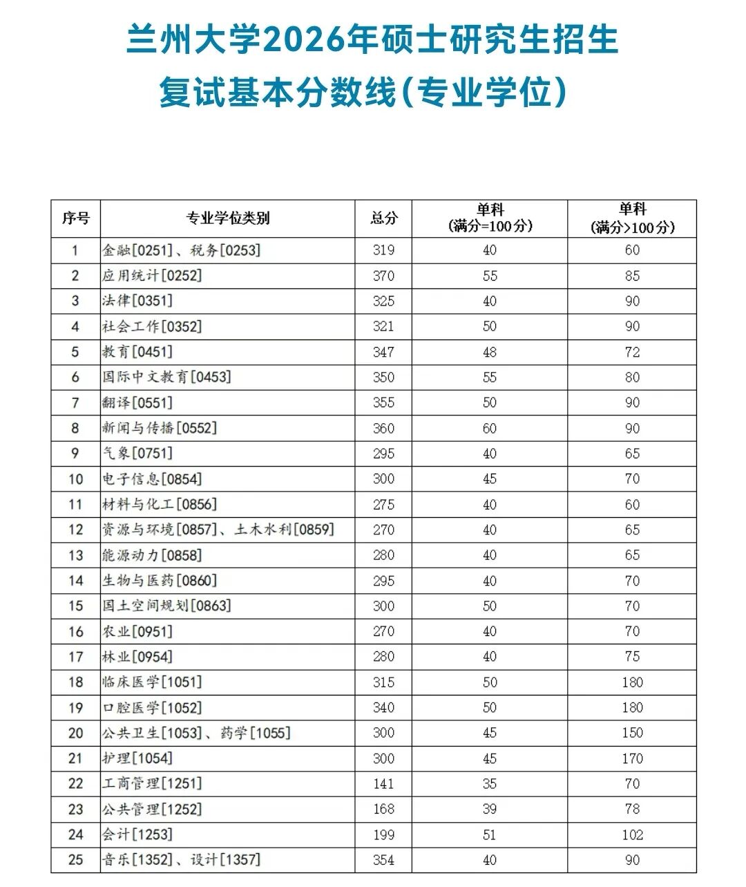 兰州大学2026年硕士研究生复试分数线公布