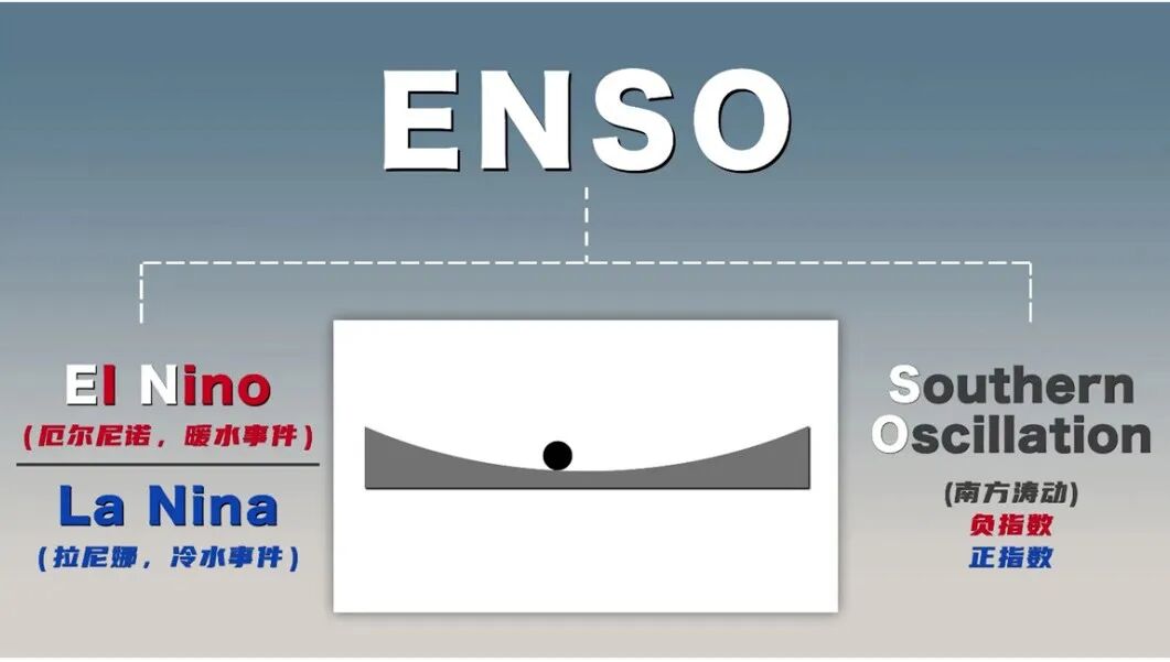 厄尔尼诺-南方涛动(ENSO)是发生在热带太平洋、具有3~7年周期的海气耦合振荡现象,是气候系统的自然变率。一般利用热带中东太平洋固定区域海表温度(SST)异常值(即偏离气候平均态的程度)持续的时间和强度来表示ENSO的位相。