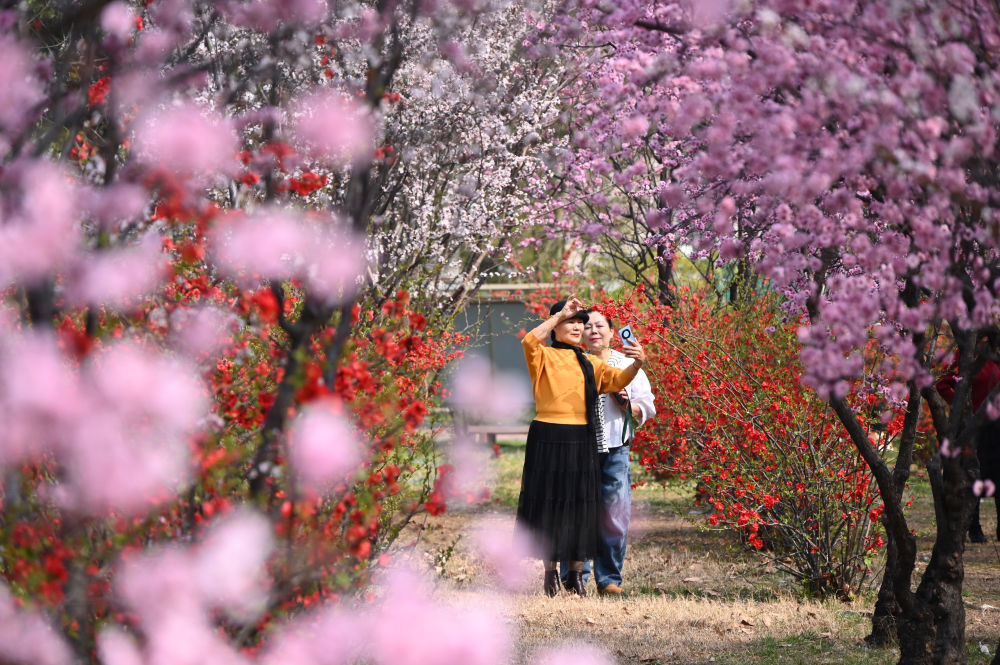春风和煦,花红柳绿,人们踏青赏花,享受美好春光。