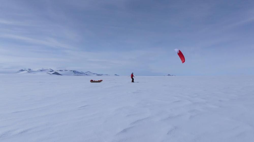 2024年12月,中国科学探险家、冰川工程学博士温旭借助风筝滑雪穿越南极大陆。图片来自中国科学探险协会网站