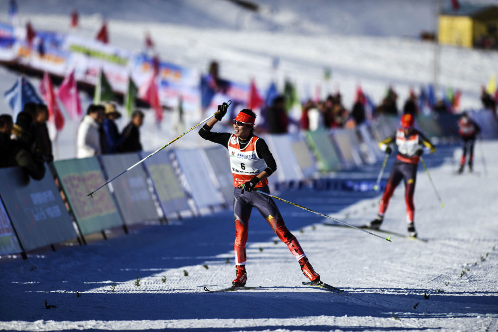 2015年1月9日,国际雪联越野滑雪中国巡回赛在伊犁新源县那拉提风景区举行。新华社记者 江文耀 摄