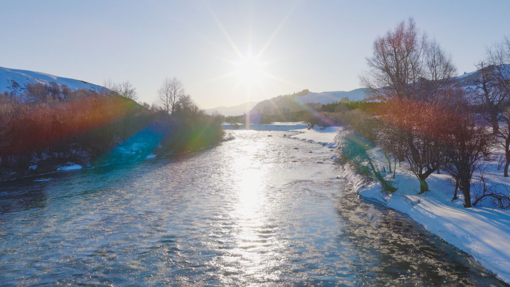 唐布拉山谷底部喀什河风光(无人机照片)。新华社记者 卢星吉 摄