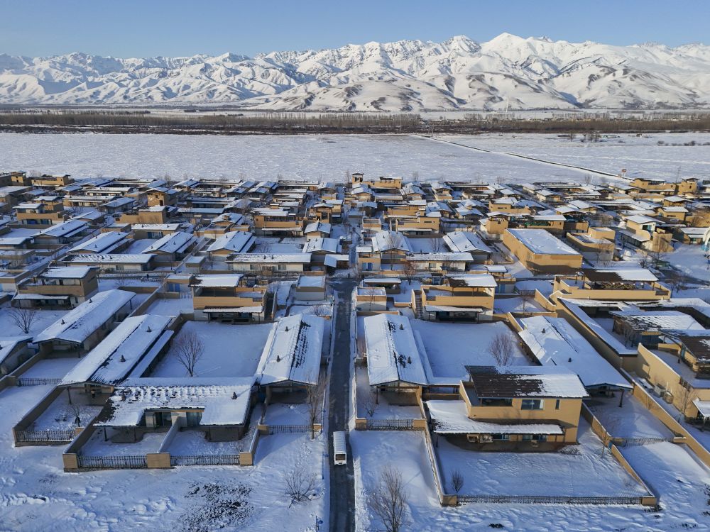 1月24日拍摄的那拉提哈茵赛滑雪度假区旁的旅游民俗村(无人机照片)。新华社记者 胡虎虎 摄