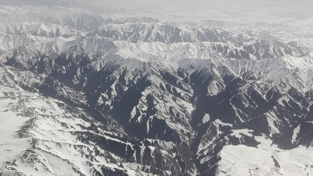 这是3月17日从飞机上拍摄的尼勒克县附近天山山脉景观。新华社记者 卢星吉 摄