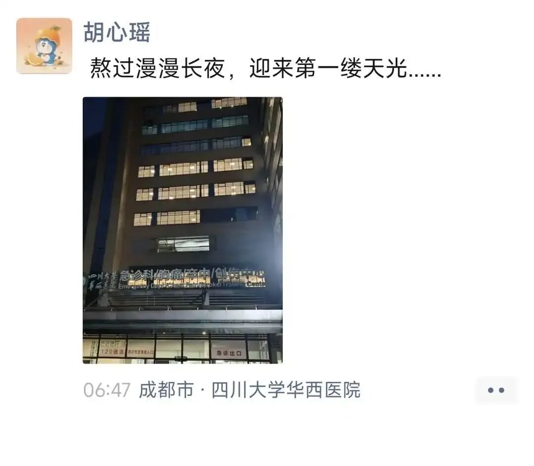 24日上午,记者联系胡心瑶时,她正在四川大学华西医院的抢救区排队等待抢救。之前,她一直在重庆医科大学附属第一医院接受治疗,23日当天还收到过一张病危通知单。昨晚,她在地铁擦拭血迹的视频在网络引发关注,有不少爱心人士主动联系她,为她提供捐助,靠着这些捐款,她才得以在今早凌晨一点转入了华西医院,接受更好的治疗。