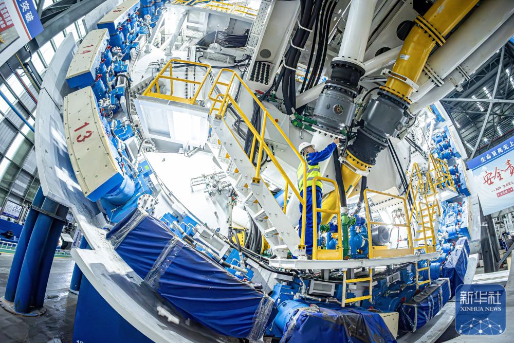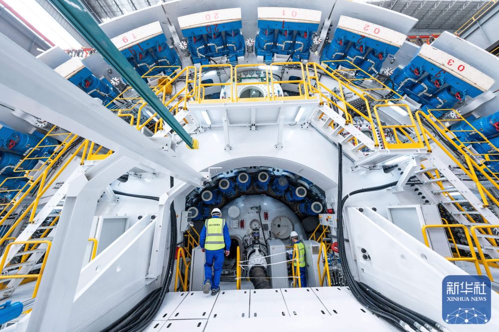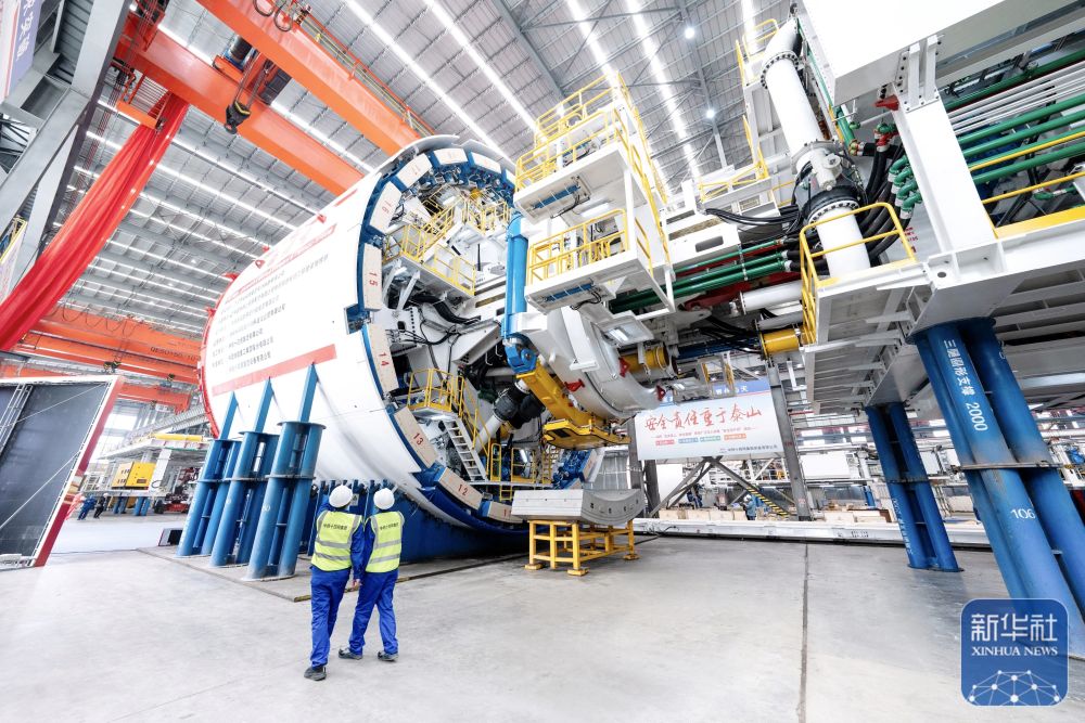 ↑ 3月31日,中铁十四局监造人员对盾构机整机进行验收。新华社发(林凤摄)