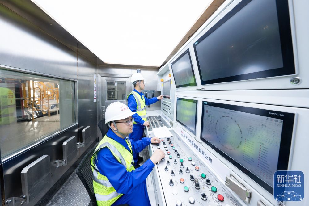 ↑ 3月31日,中铁十四局监造人员验收盾构机操作系统。新华社发(林凤摄)