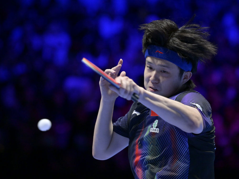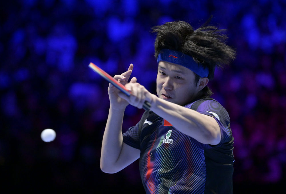 4月1日,中国队选手王楚钦在比赛中回球。新华社记者 于洋 摄