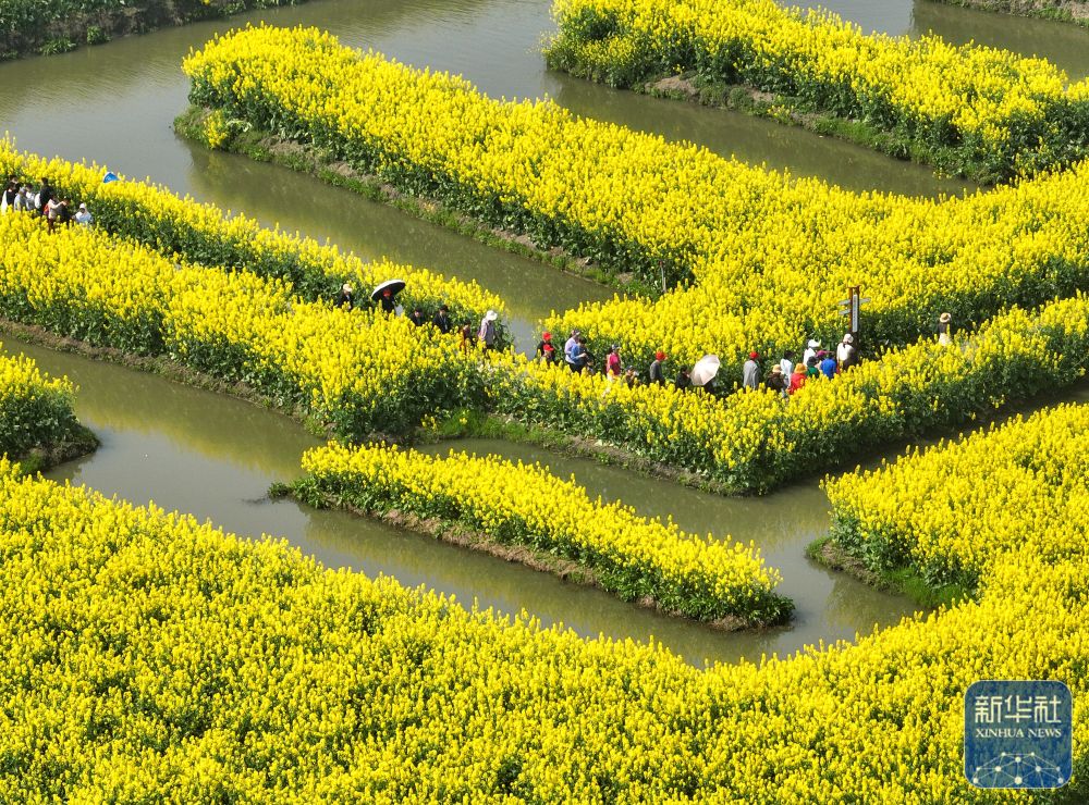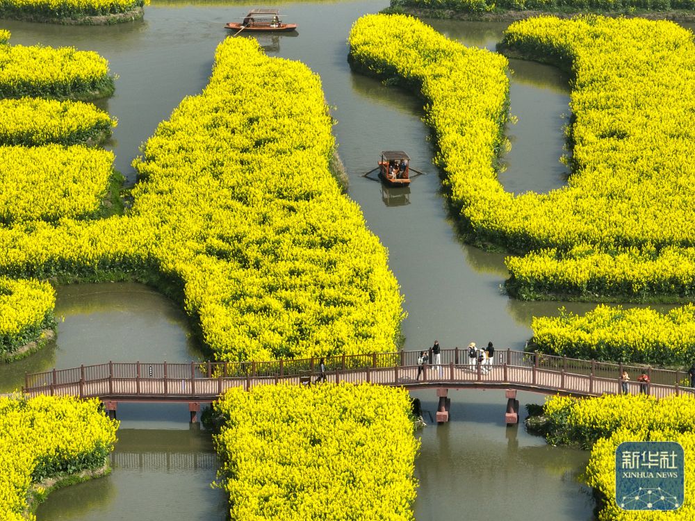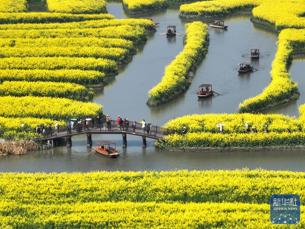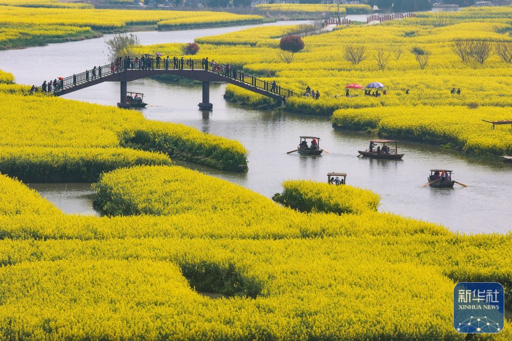 近日,江苏省多地油菜花已进入盛花期,金黄色的油菜花与纵横交错的河道构成“河有万湾多碧水,田无一垛不黄花”的春日画卷。游客或漫步或乘船,徜徉花海,欣赏美景,尽享春日美好。