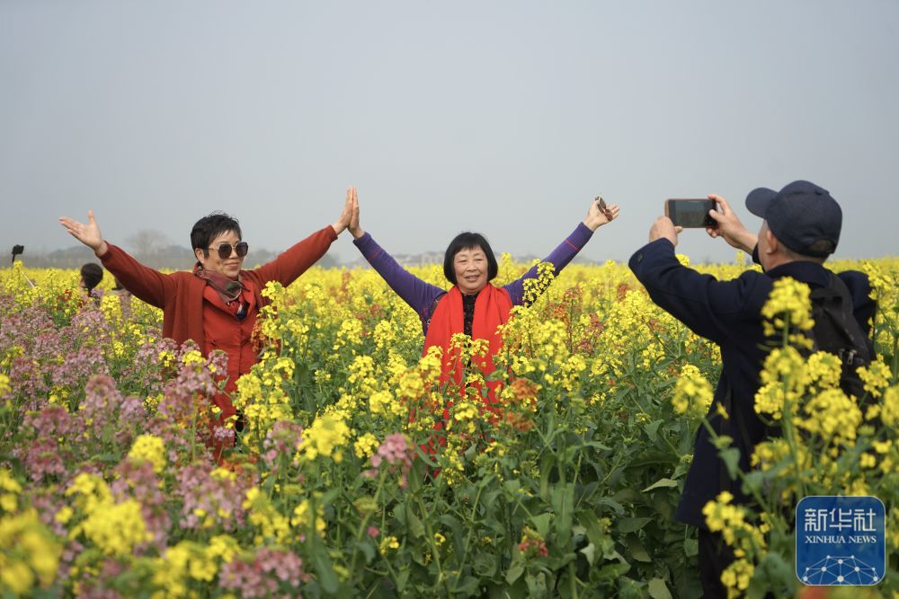金黄油菜花在江苏大地绽放,游客尽情游玩,这是春天的盛宴,也是旅游的新亮点。