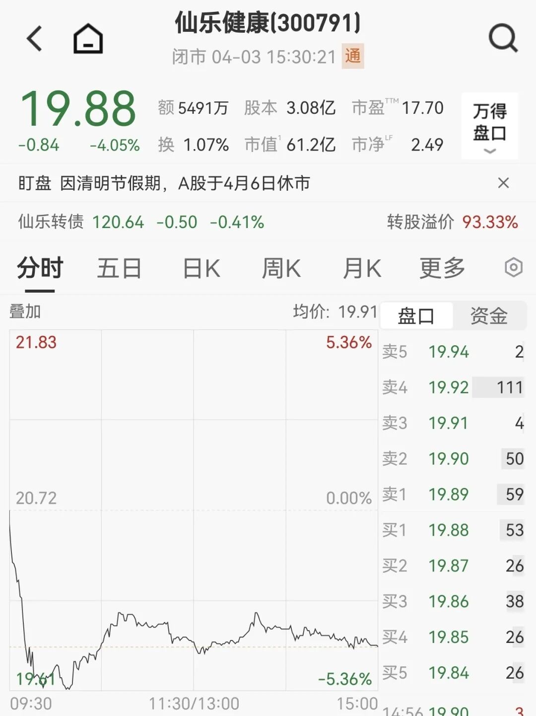 代工巨头仙乐健康股价震荡走低