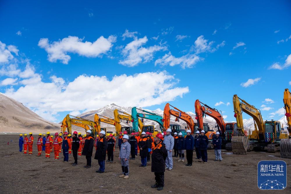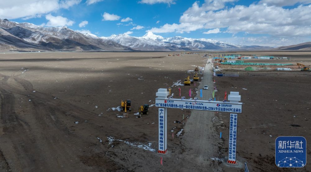 4月6日上午,中广核西藏当雄乌玛塘“光热+光伏”一体化项目中的50兆瓦光热电站在拉萨市当雄县乌玛塘乡正式开工建设。据中广核光热技术型号首席专家尹航介绍,该项目场址海拔4550米,是目前全球海拔最高的槽式光热电站。新华社记者 丁增尼达 摄影报道