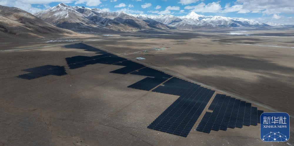 这是中广核当雄乌玛塘“光热+光伏”一体化项目(4月6日摄,无人机照片)。