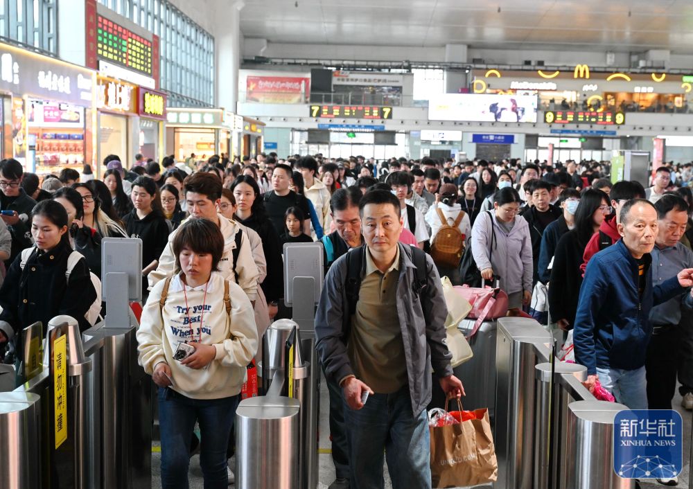 ↑ 这是4月6日在福州火车站拍摄的旅客客流。新华社记者 林善传 摄