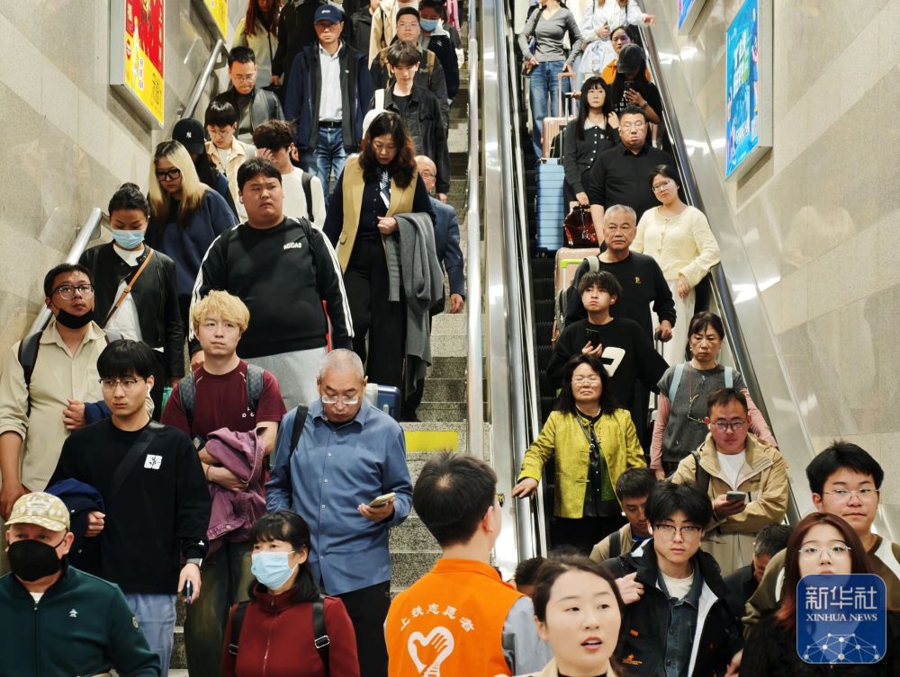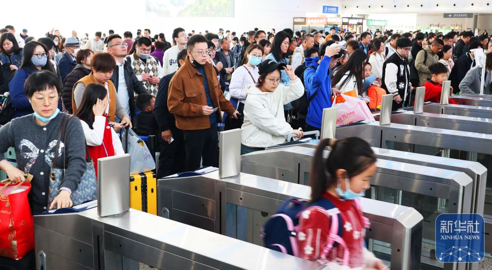↑ 这是4月6日在江苏省连云港站拍摄的旅客客流。新华社发(耿玉和 摄)