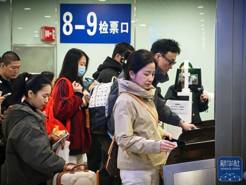 ↑ 4月6日,旅客在北京南站检票进站。新华社记者 邢广利 摄