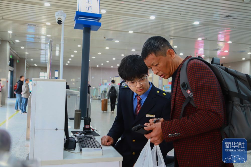 ↑ 4月6日,在甘肃省兰州站,工作人员为旅客提供服务。新华社发(王光辉 摄)