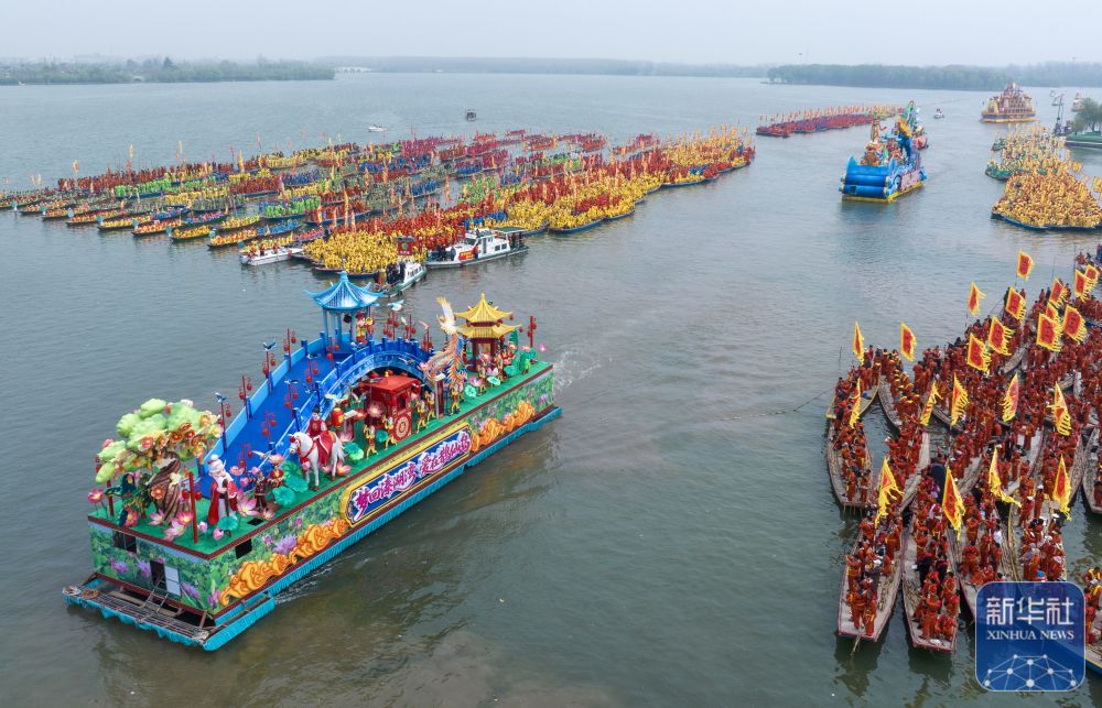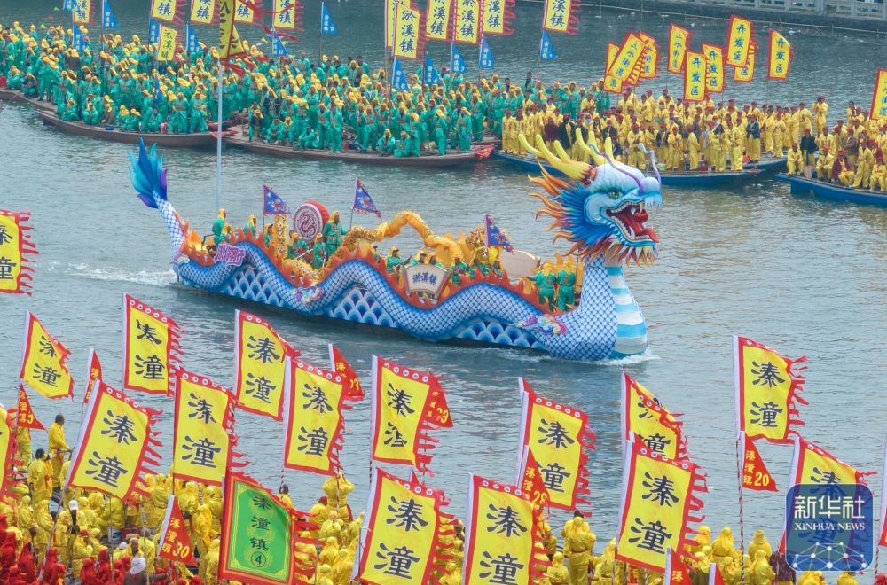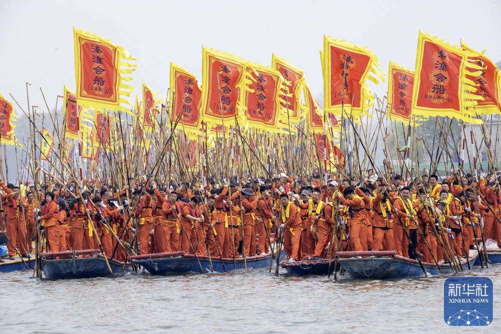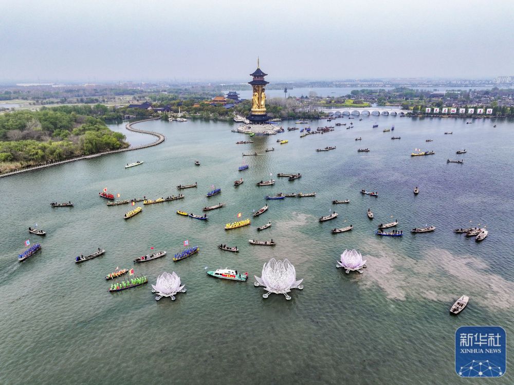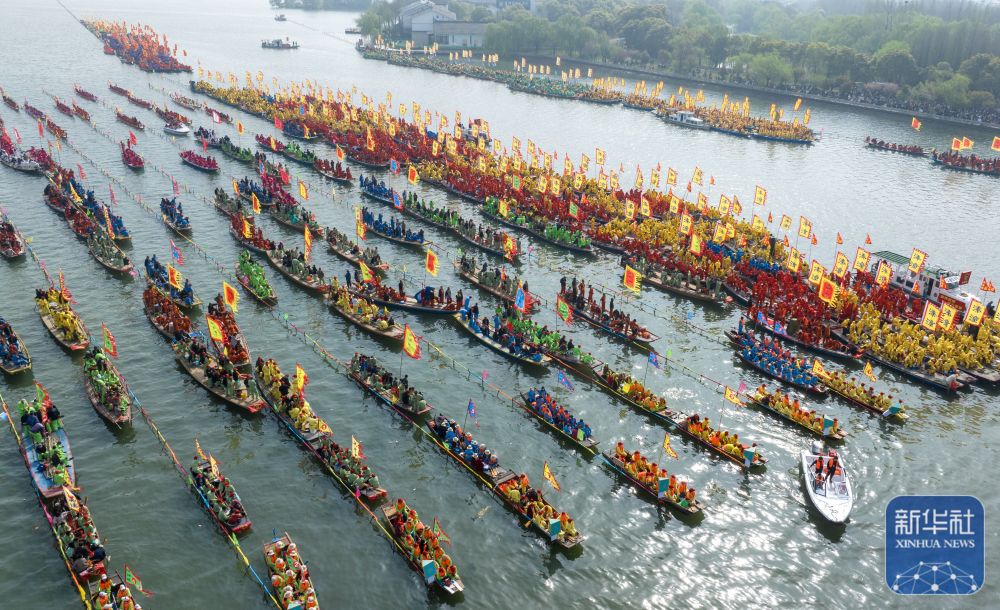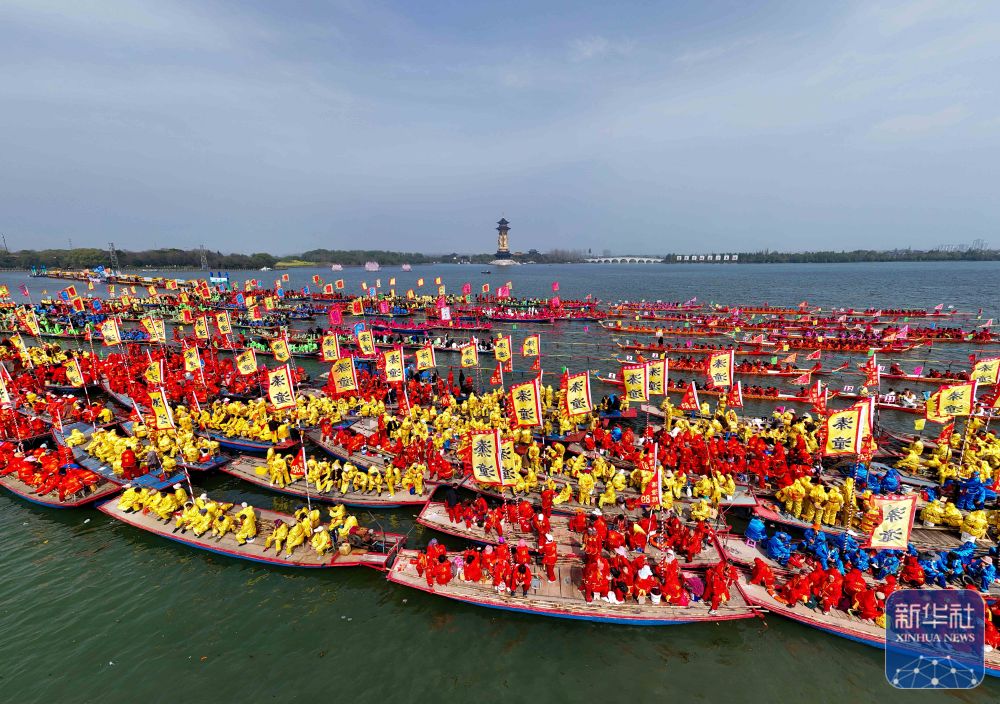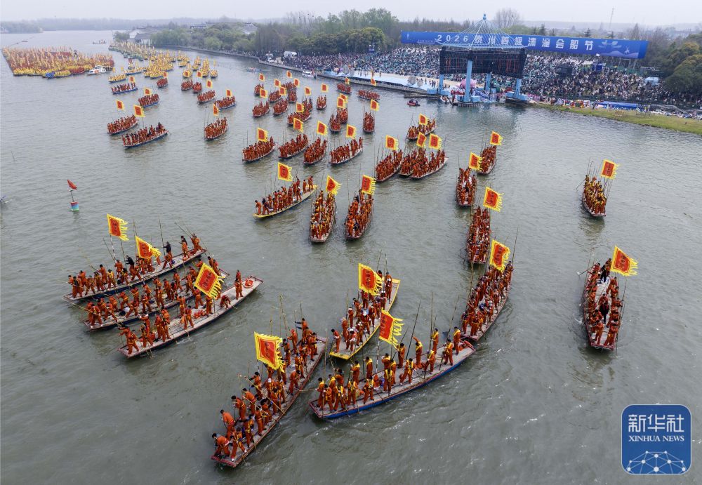 4月6日,2026年泰州姜堰溱潼会船节在江苏省泰州市姜堰区溱湖国家湿地公园开幕,数百条各式船只和上万名会船选手飞篙走桨,奋勇争先,演绎历久弥新的民俗画卷。