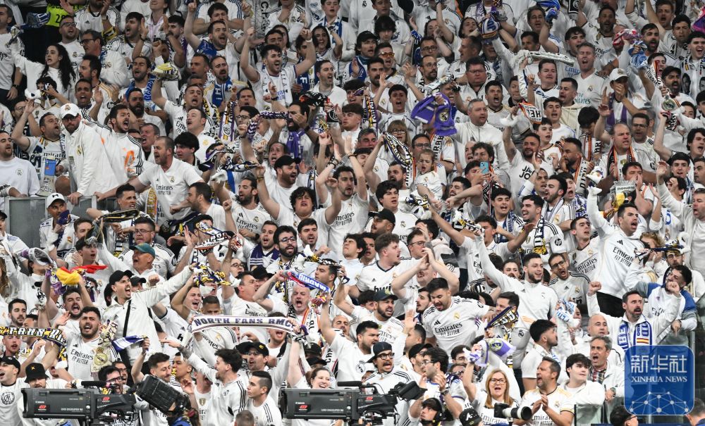 ↑ 皇家马德里队球迷为球队加油助威。