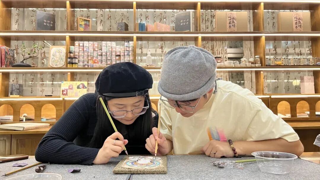 空间与业态创新上,书局合理划分阅读区、研学区、休闲区、活动区,打造功能完备、氛围浓郁的文化场景。创新推出“做一本书在敦煌”等特色研学课程,让静态阅读转变为动态动手体验,游客可以亲手打造个性化敦煌记忆,感受传统技艺与文化的魅力。同时,书局打破地域限制,在杭州落地“西湖遇见敦煌”数字文娱空间,将敦煌文化推向全国,拓宽了特色书店的发展路径,也让敦煌文脉在更广阔的天地间传播。