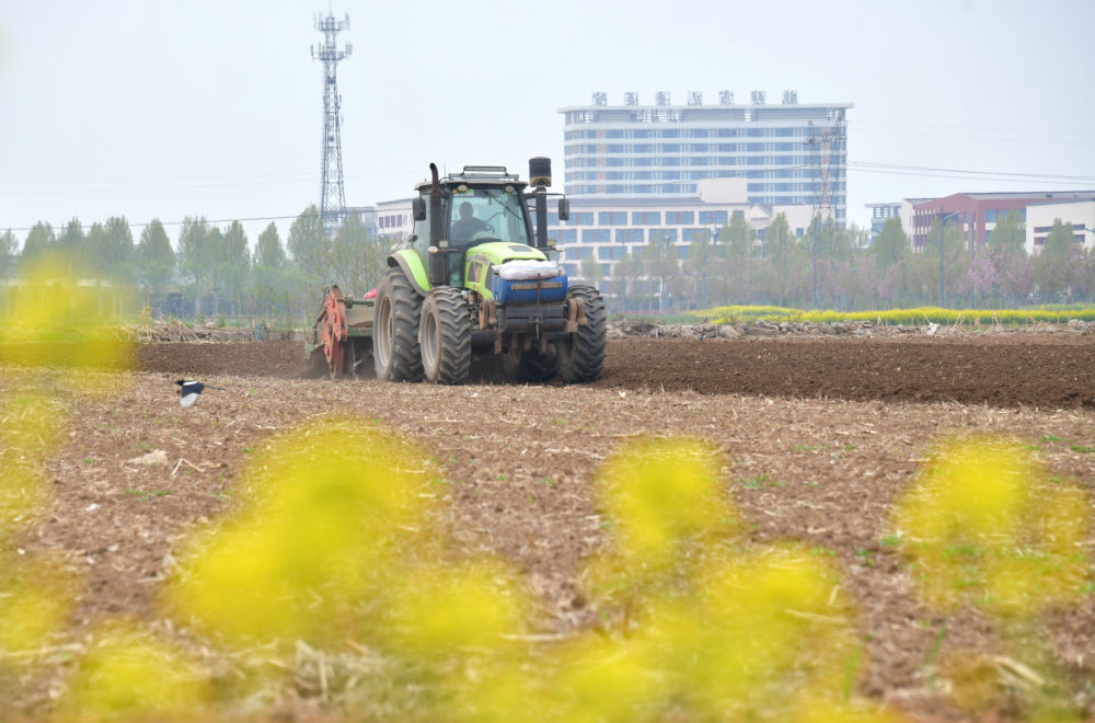 ↑ 4月8日,农民驾驶农机在河南省鹤壁市淇滨区大赉店镇孟庄村的田间耕作。新华社发(赵永强摄)