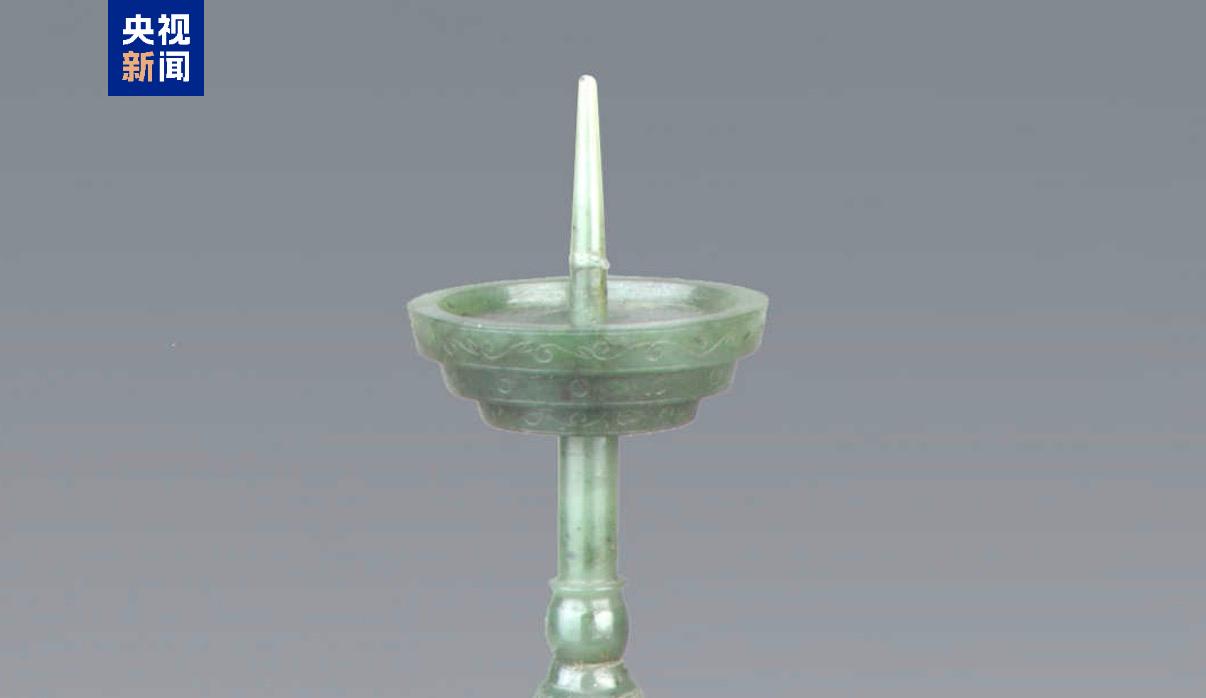 这件烛台由整块碧玉雕成