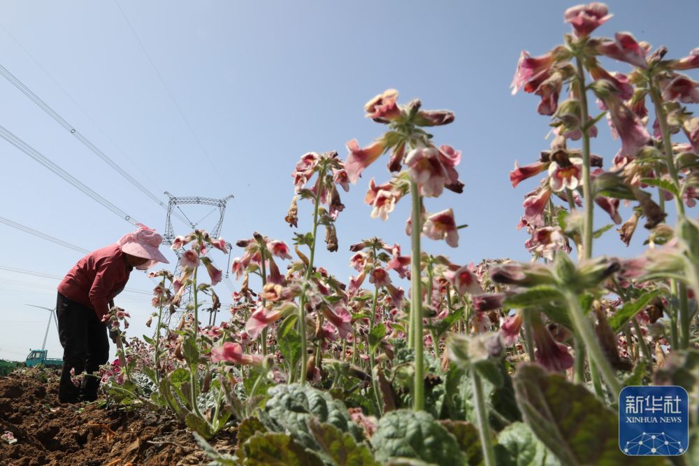 ↑ 4月17日,河南省焦作市温县祥云镇张寺村农民在采收怀地黄。新华社发(徐宏星摄)