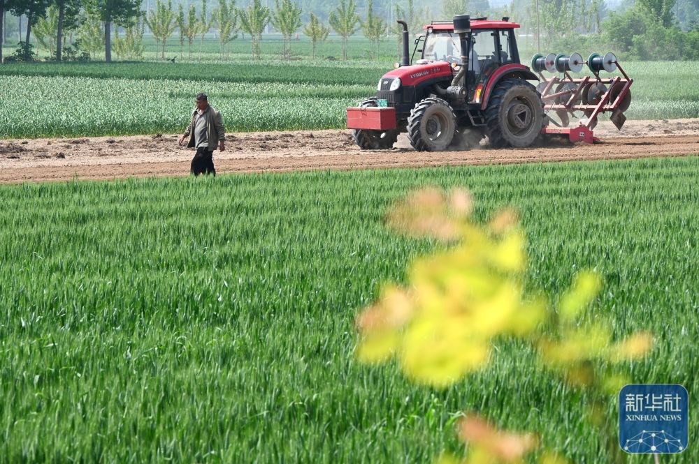 ↑ 4月17日,河南省沁阳市太行街道东沁阳村农民在田间劳作。新华社发(杨帆摄)