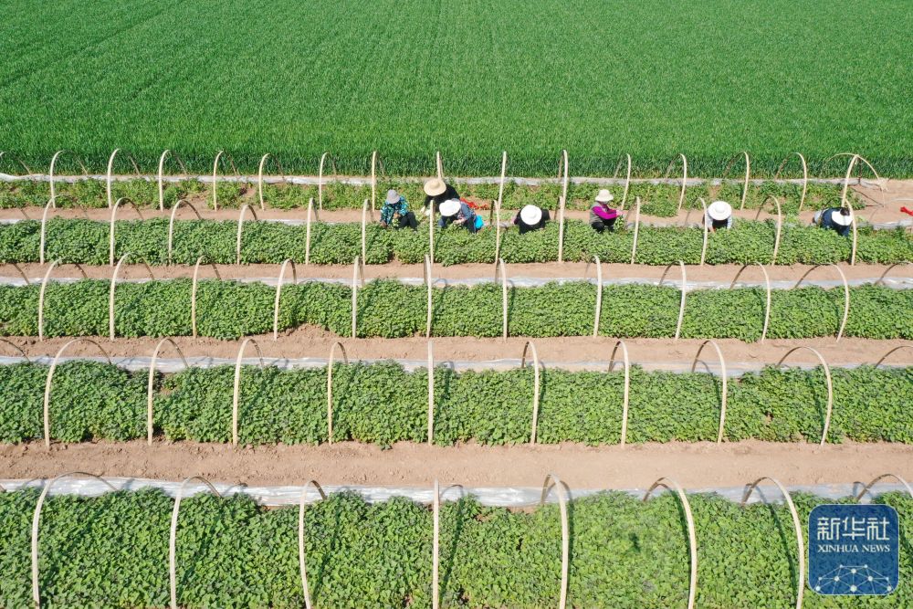 ↑ 4月18日,河南省沁阳市王曲乡东王曲村,农民在红薯苗圃起红薯苗准备栽种(无人机照片)。新华社发(杨帆摄)