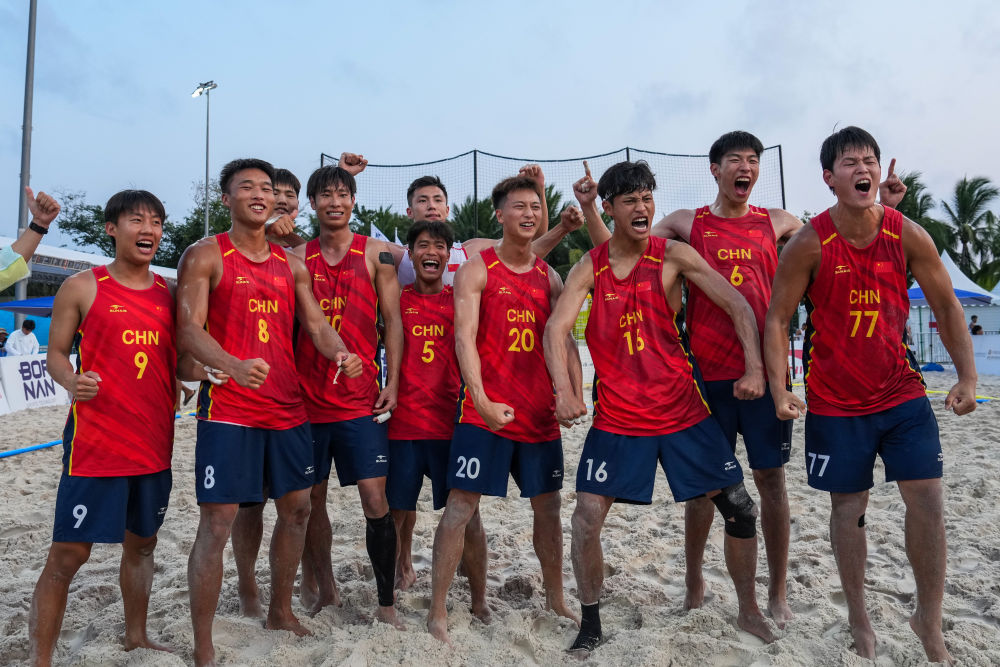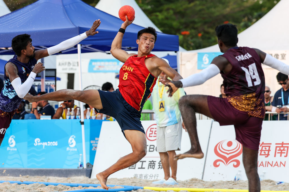 新华社三亚4月21日电 21日,第六届亚洲沙滩运动会在海南三亚迎来首个比赛日的争夺,中国队在男子沙滩手球预赛中收获一胜一负。