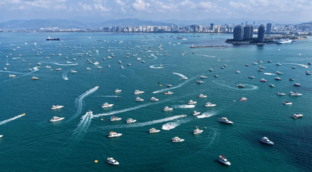 2026年2月21日,游客在三亚乘船游玩(无人机照片)。新华社记者 赵颖全 摄