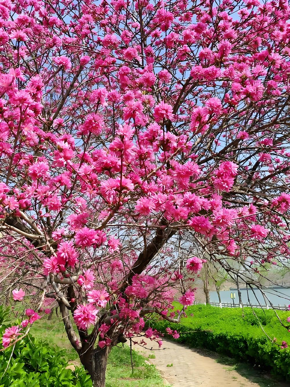 双樱挂满枝头。