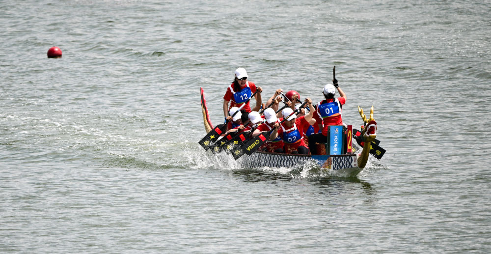 男子组方面,中国队以1分34秒990的成绩摘金,泰国队、中国香港队分获银牌和铜牌。此前,中国男队在12人龙舟100米和200米直道赛中拿下1金1银。