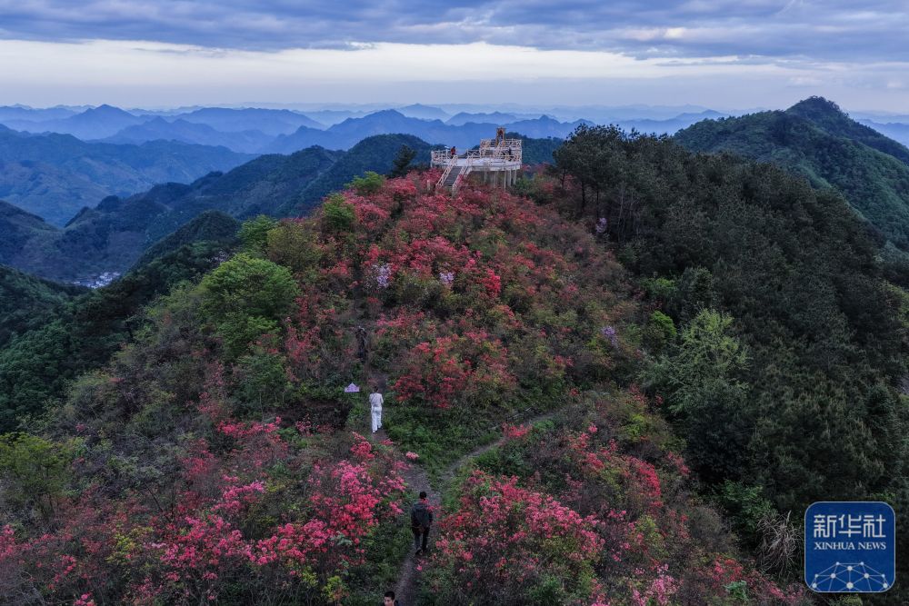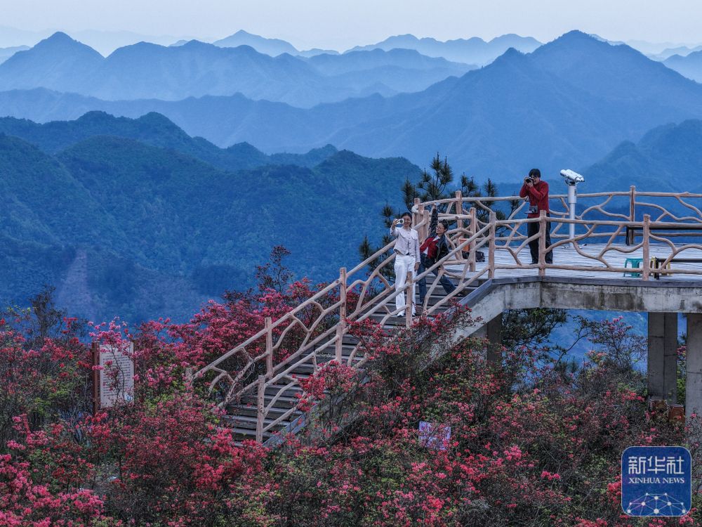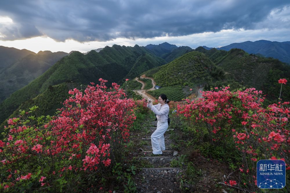 近期,浙江省杭州市淳安县屏门乡金陵村的数百亩高山野生杜鹃热烈绽放,吸引各地游客前来观赏。