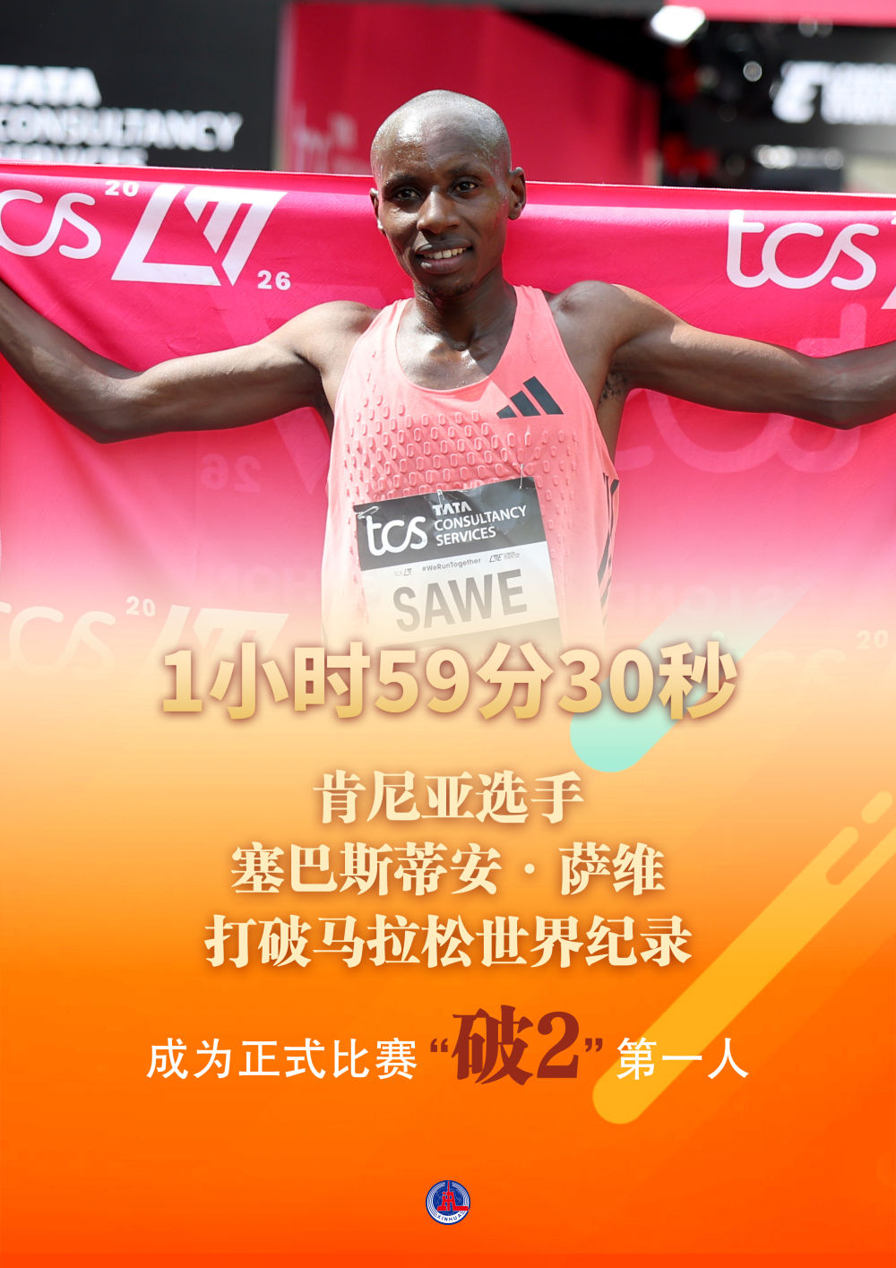 男子马拉松原世界纪录是肯尼亚人基普图姆在2023年芝加哥马拉松跑出的2小时00分35秒。31岁的萨维也成为人类历史上首位在正式马拉松比赛中突破“两小时”大关的运动员。