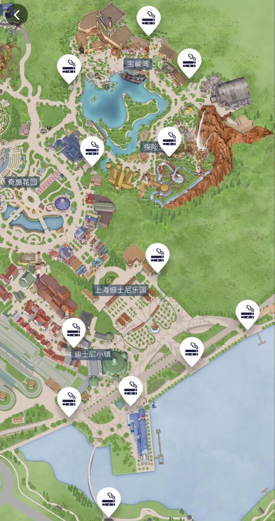 上海迪士尼度假区吸烟区示意图。 平台截图