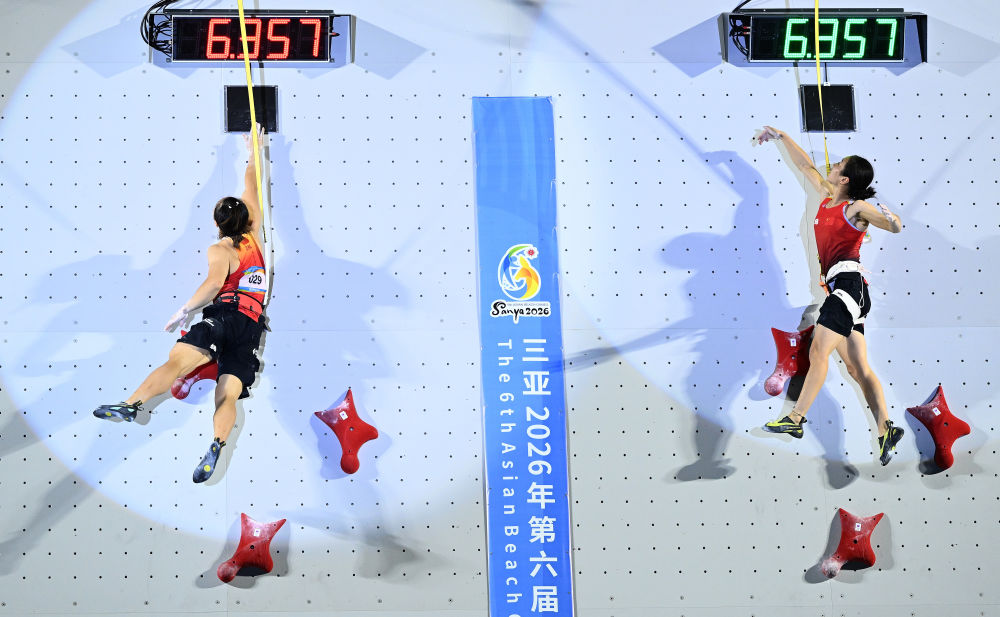 亚沙会丨中国选手包揽攀岩女子速度冠亚季军