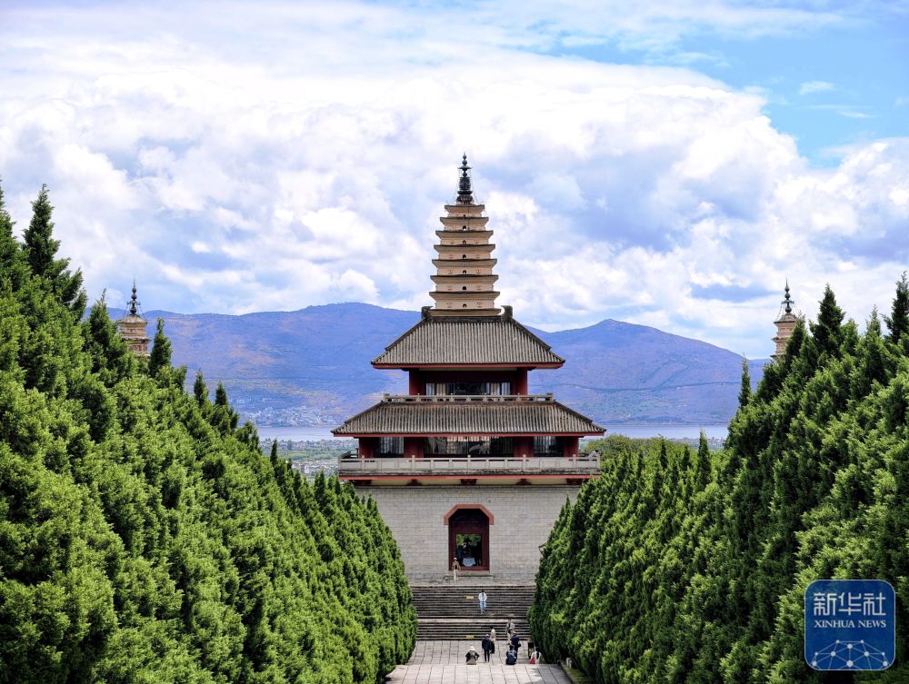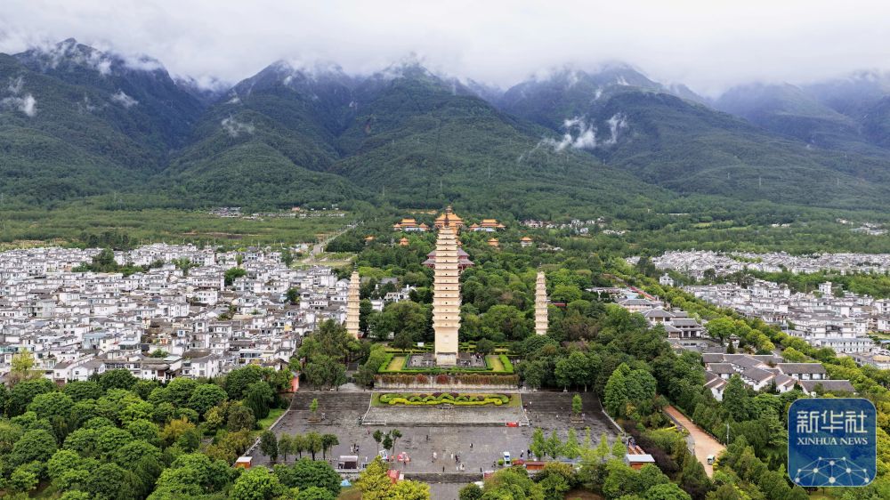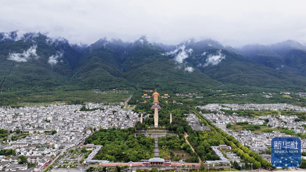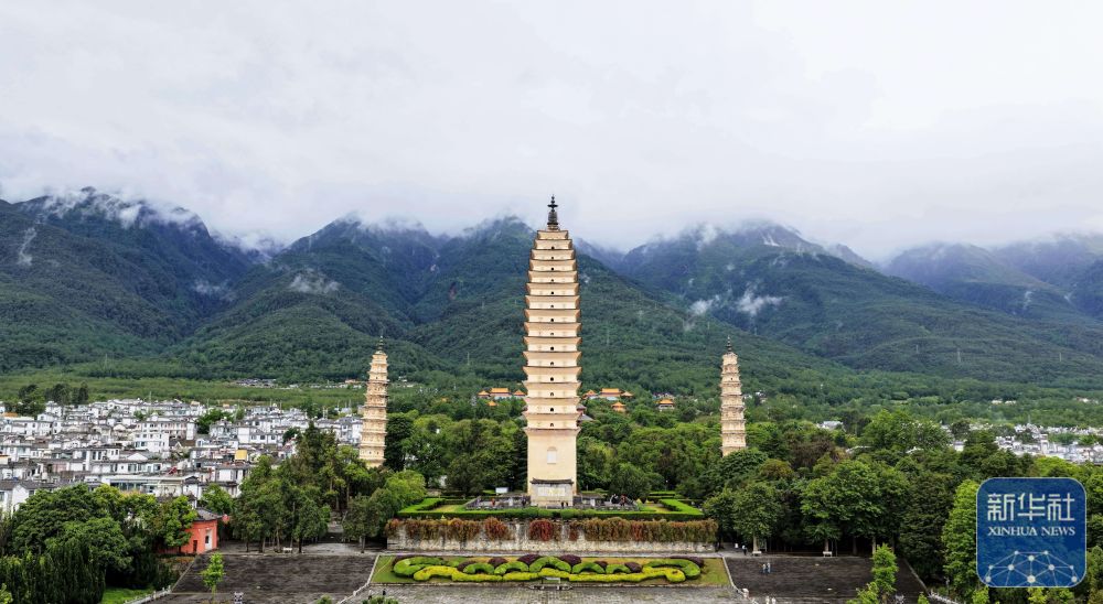 云南大理崇圣寺三塔是我国首批全国重点文物保护单位。雨后的崇圣寺三塔静谧庄严,苍山云雾缭绕,山水与千年古塔相映成景,显现人文与自然交融的独特韵味。新华社记者 邢广利 摄影报道