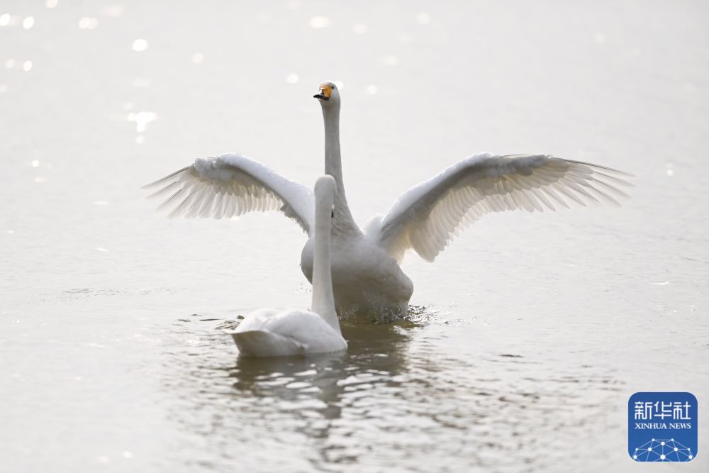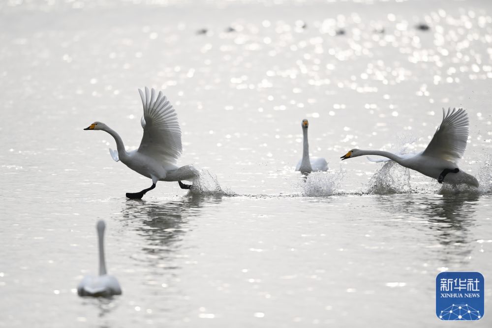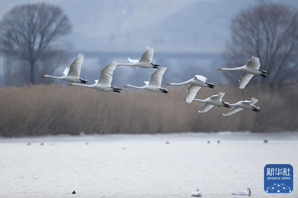 近期,一批迁徙的天鹅飞抵甘肃省兰州市西固区达川镇境内的黄河兰州段三河口处栖息越冬,为冬日黄河增添生机和灵动。