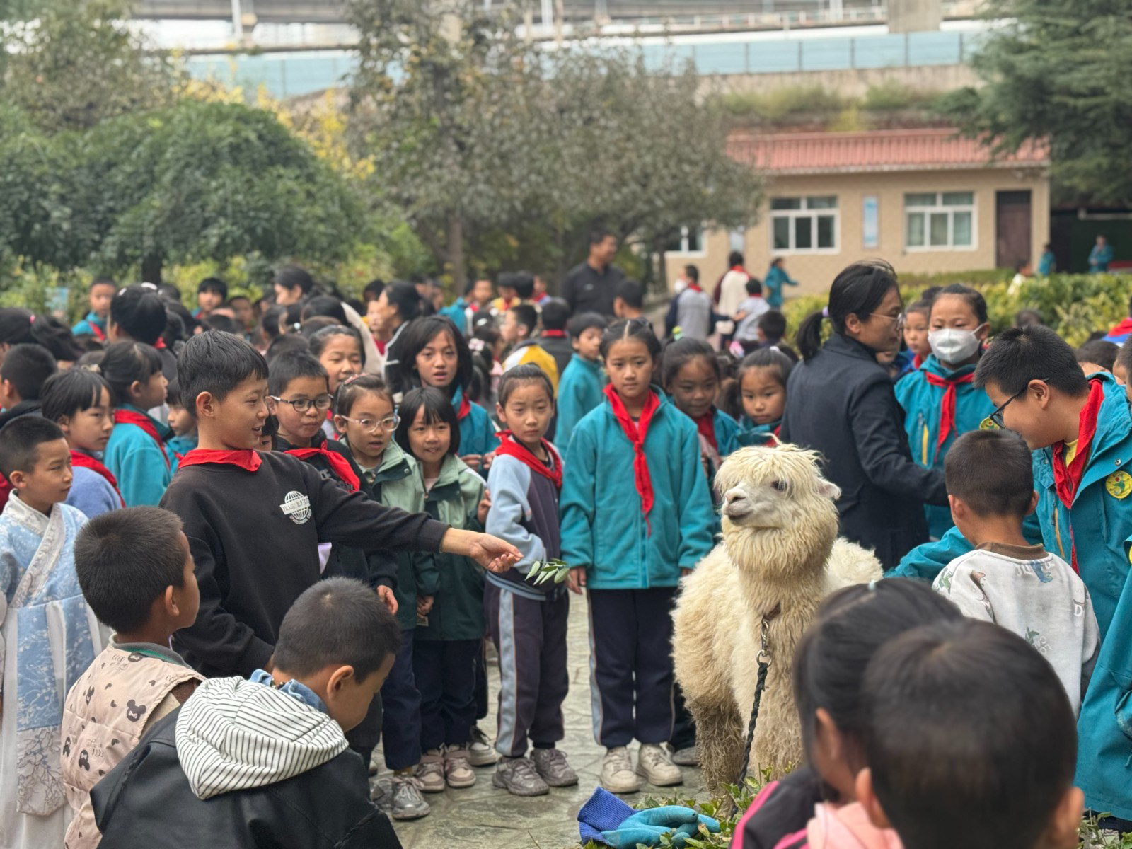 在兰州市第五十四中和兰州市第六十六中的野生动物保护科普活动现场,随动物园叔叔阿姨们组团前来的羊驼“黑芝麻”和它的小伙伴折耳兔、柯尔鸭隆重出场!它们可爱呆萌的模样瞬间吸引同学们的视线,呆萌的绒毛,长长的脖子,可爱的短腿,天真的表情,憨态可掬的外形……瞬间,同学们热情高涨,都迫切想和羊驼“黑芝麻”来一次亲密接触。